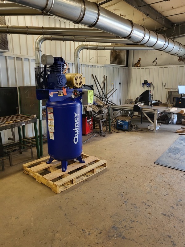 A new 80 gallon air compressor with water separator and filter has been delivered to the Agri Building. This compressor is key for the use of the CNC cut out machine to function properly. The CNC machine gives students the opportunity to learn higher technology that is in use in many different industries. The capacity of this compressor will allow students to use the cut out table and other pneumatic powered tools/machines without hindering the other.