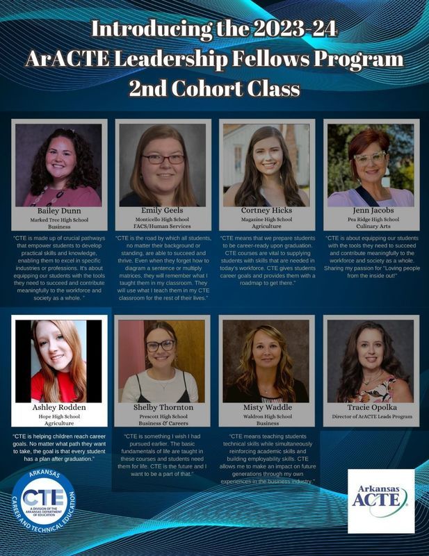 Hope High Teacher Ashley Rodden has been accepted into the 2023 Arkansas National Leadership Fellowship Program! Ashley says, "CTE is helping children reach career goals. No matter what path they want to take, the goal is that every student has a plan after graduation."