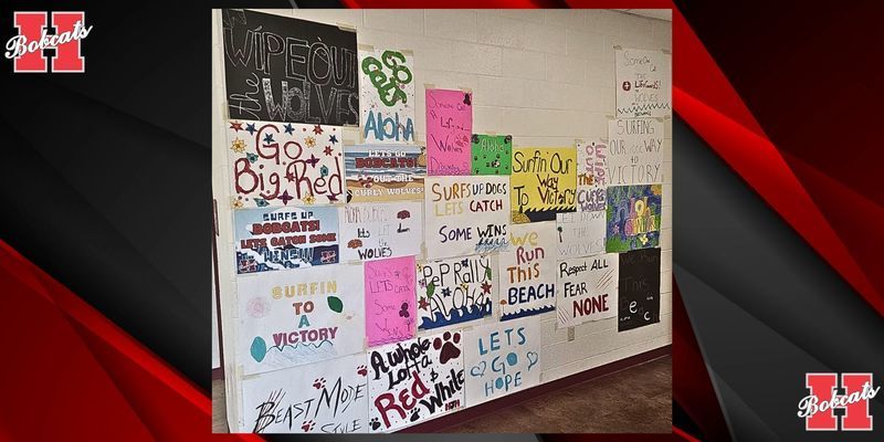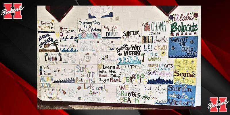 Hope High School is hangin' ten with the ALOHA SPIRIT! Students made posters in preparation of tonight's Bobcats football game versus Prescott!